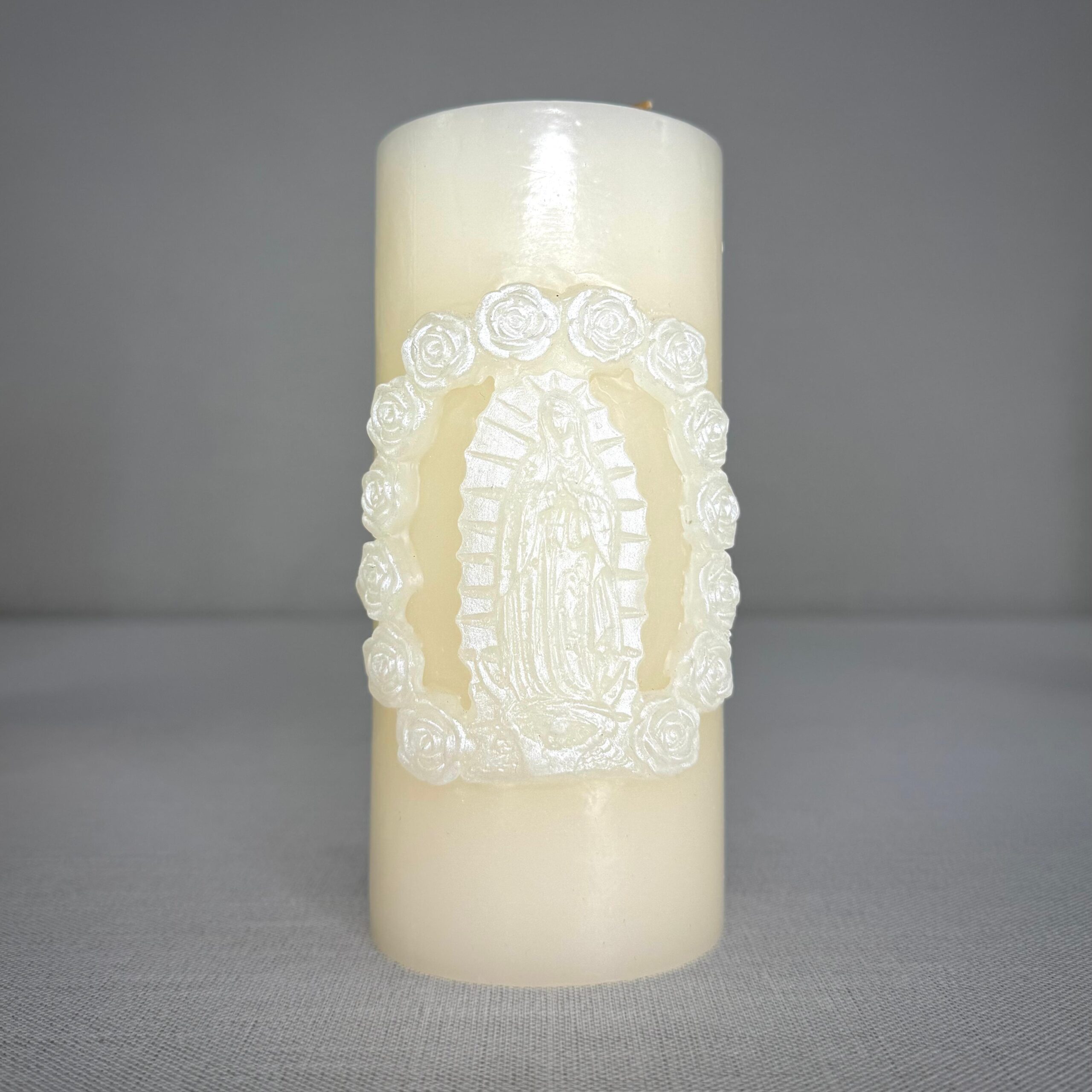 Cirio con Virgen con rosas Marfil